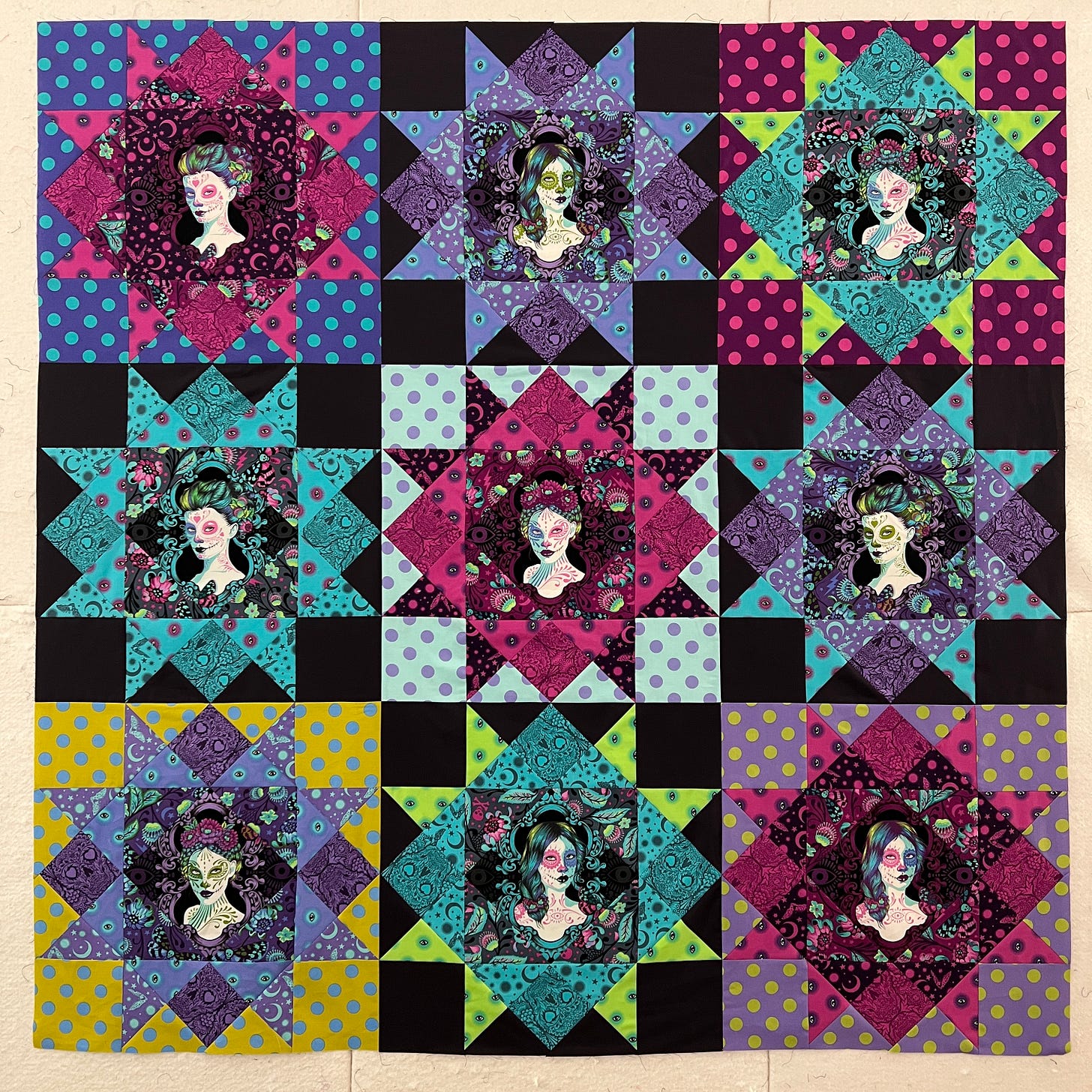 Part of my mission as The Bitchy Stitcher, besides making people spit tea on their computer screens, was encouraging my readers to get comfortable with their mistakes, maybe even embrace them, because mistakes are an integral part of learning and growth. In fact it was quilting which taught me that and while I know that’s not an original concept, my personal brand of perfectionism, instilled in me from childhood, didn’t allow for mistakes. Mistakes were shameful, a result of my personal failings, and if I couldn’t do something brilliantly at first go I probably shouldn’t do it at all. My first quilt started chipping away at that lifelong neurosis. I sewed two rows on upside down and didn’t notice until it had already been quilted and bound. The binding was an absolute shitshow of huge crooked stitches and other travesties. But it was still a quilt, made for my oldest child who loved and treasured it, and none of the mistakes made it less useful or less loved. My perfectionism had protected me from failure but it had also held me back from success.